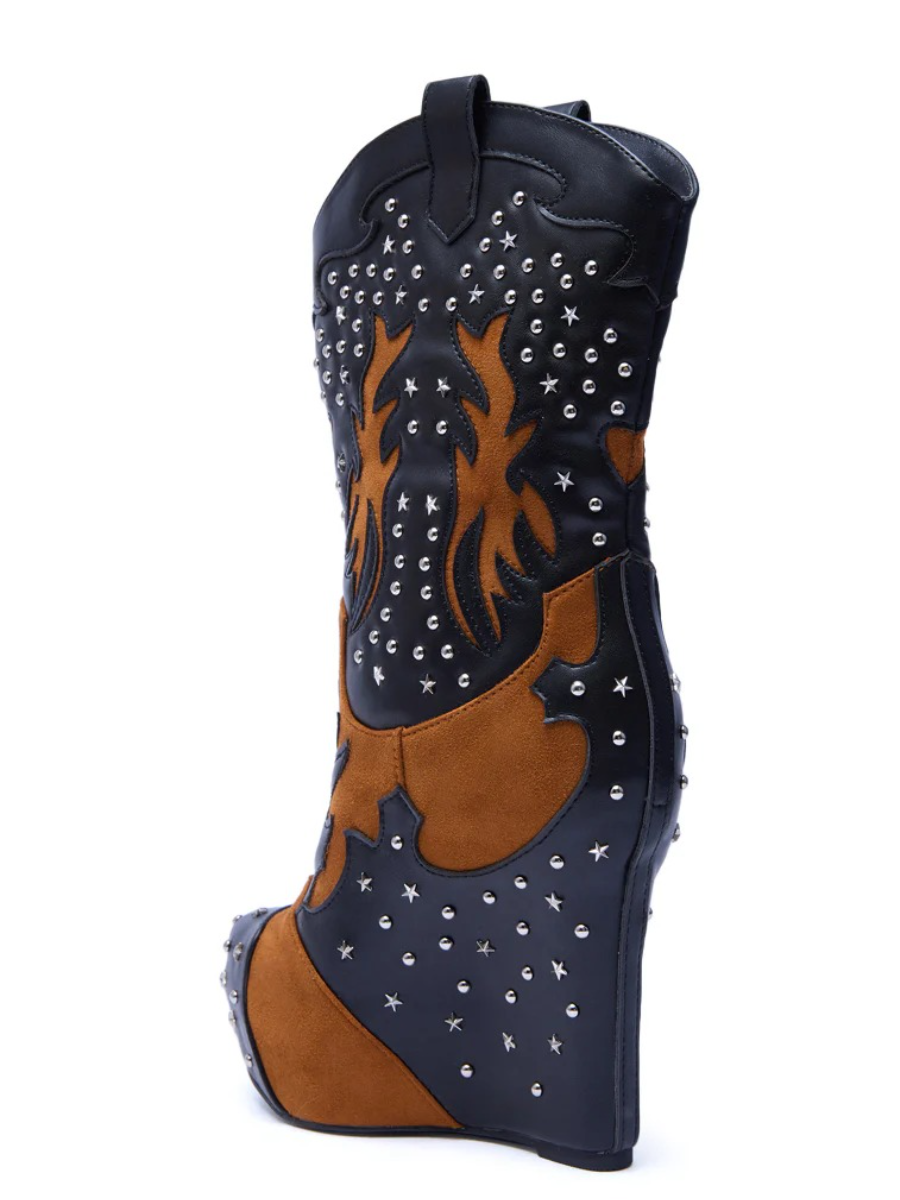 CALLIA BLACK MULTI WESTERN WEDGE BOOTIE