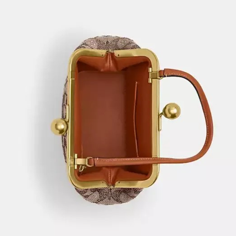 A modern take on vintage elegance — the Mini Size Kisslock Crystal Bag is your perfect companion for both day and evening occasions. Crafted from signature jacquard and glovetanned leather, this petite piece shimmers with timeless sophistication. The delicate kisslock closure and detachable chain strap make it effortlessly chic, whether carried by hand or worn crossbody.
